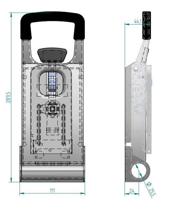 30625 I – Push Door Locking handle (guide base type) 306 series, suitable for use with Ø25 mm tube. Stainless steel.